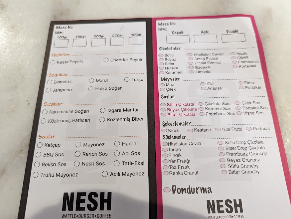 Nesh Waffle Burger Coffee Ardeşen Menu